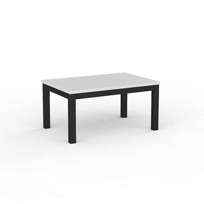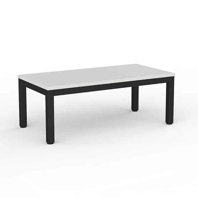- Its 25mm melamine tabletop in studio white adds a fresh and sleek touch to any room, making it instantly more inviting and poised.