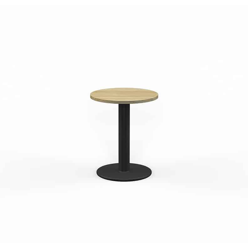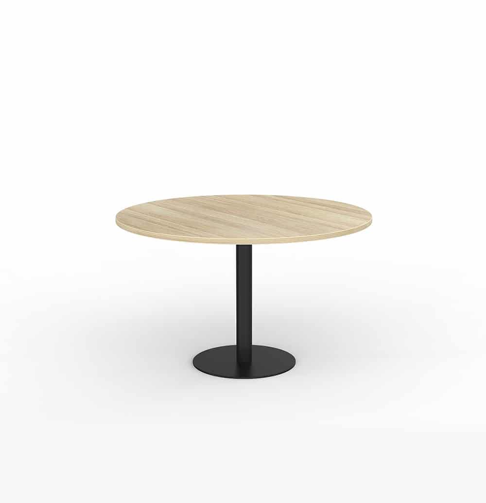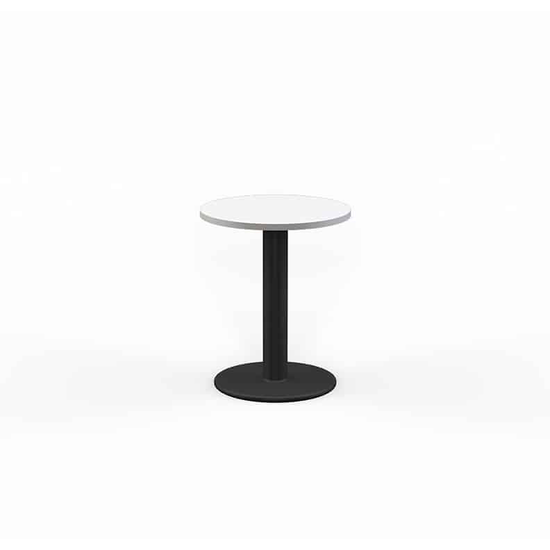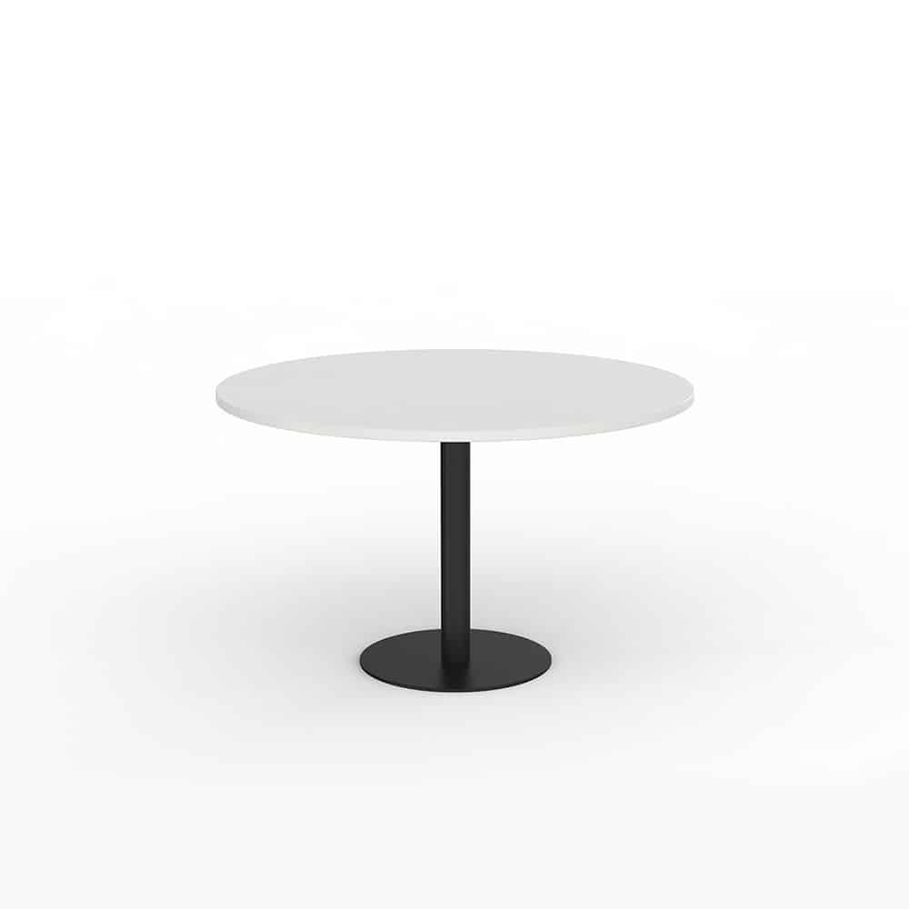 EkoSystem Pedestal Meeting Table with worktop size of 600mm Round. White 25mm Worktop, Black Powdercoat base.
