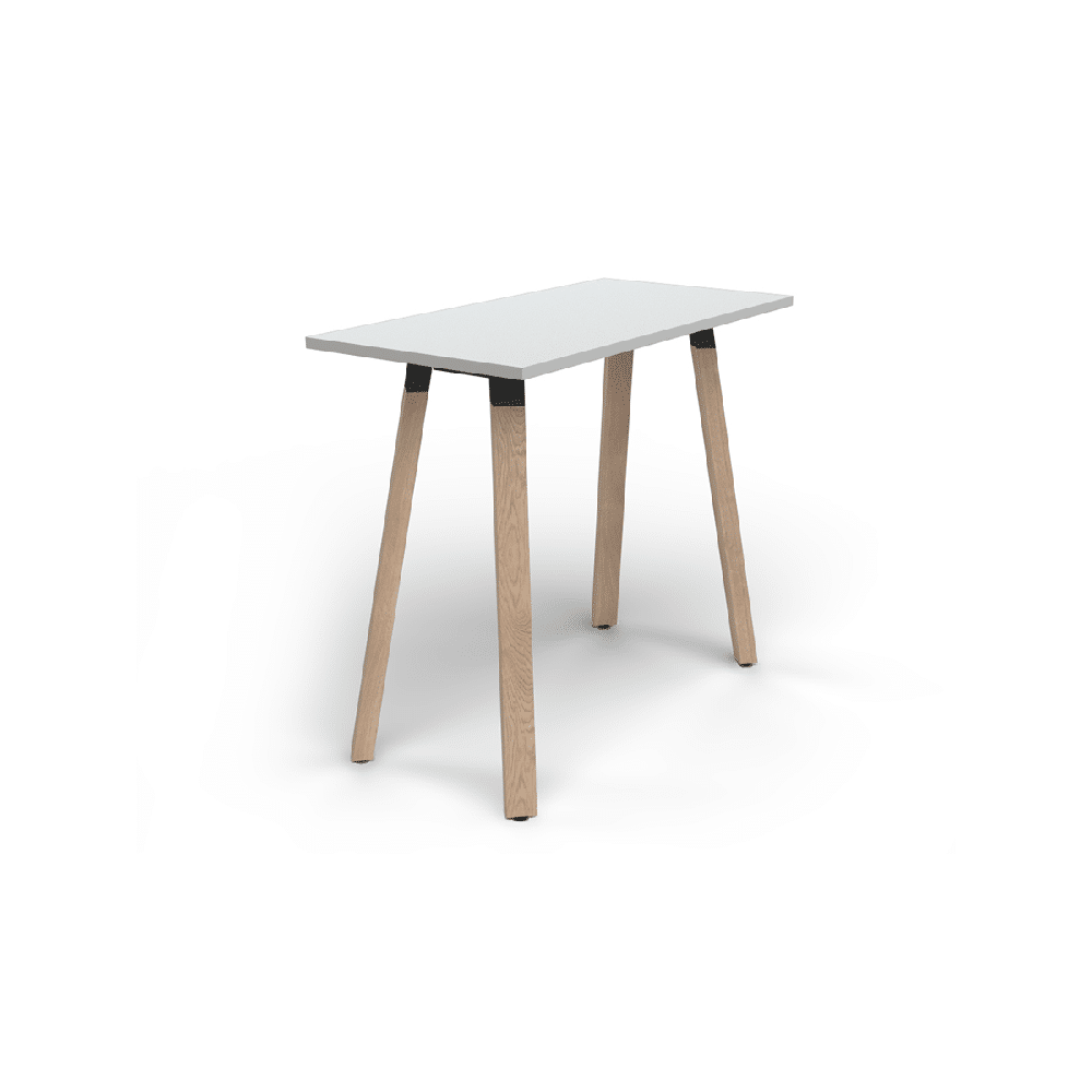 Plantation bar leaner is perfect for adding a natural timber finish in your breakout spaces. 1050mm worktop height with black powdercoat frame connection parts.